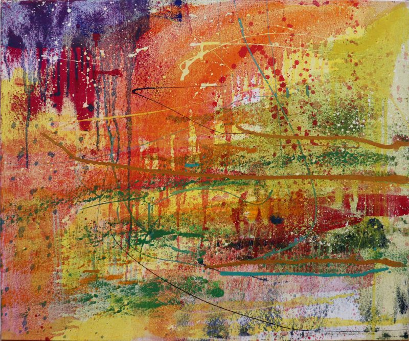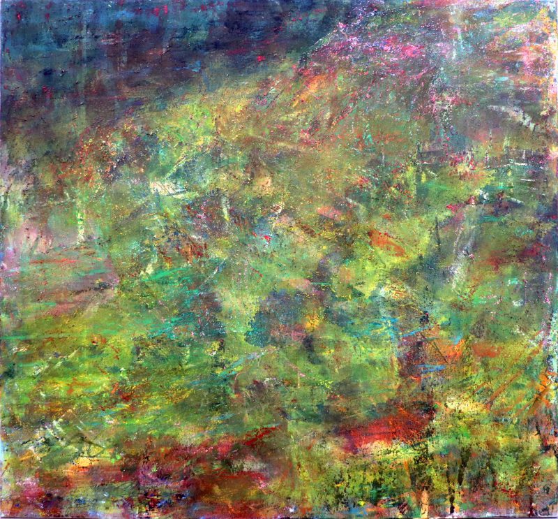 El lenguaje artístico de Grieve se sumerge en un desborde inquietante, impregnado de especulación psíquica y enervado por una angustia vital. En superficies de vibración cromática intensa, la espontaneidad se manifiesta a través de un azar controlado, con manchas, chorreados y líneas, mientras que la aplicación meticulosa de pigmentos en pequeños toques crea un contraste magnificado en el espacio, dando origen a visiones sosegadas y dinámicas que revitalizan la noción de contemplación.