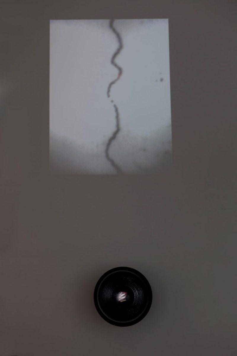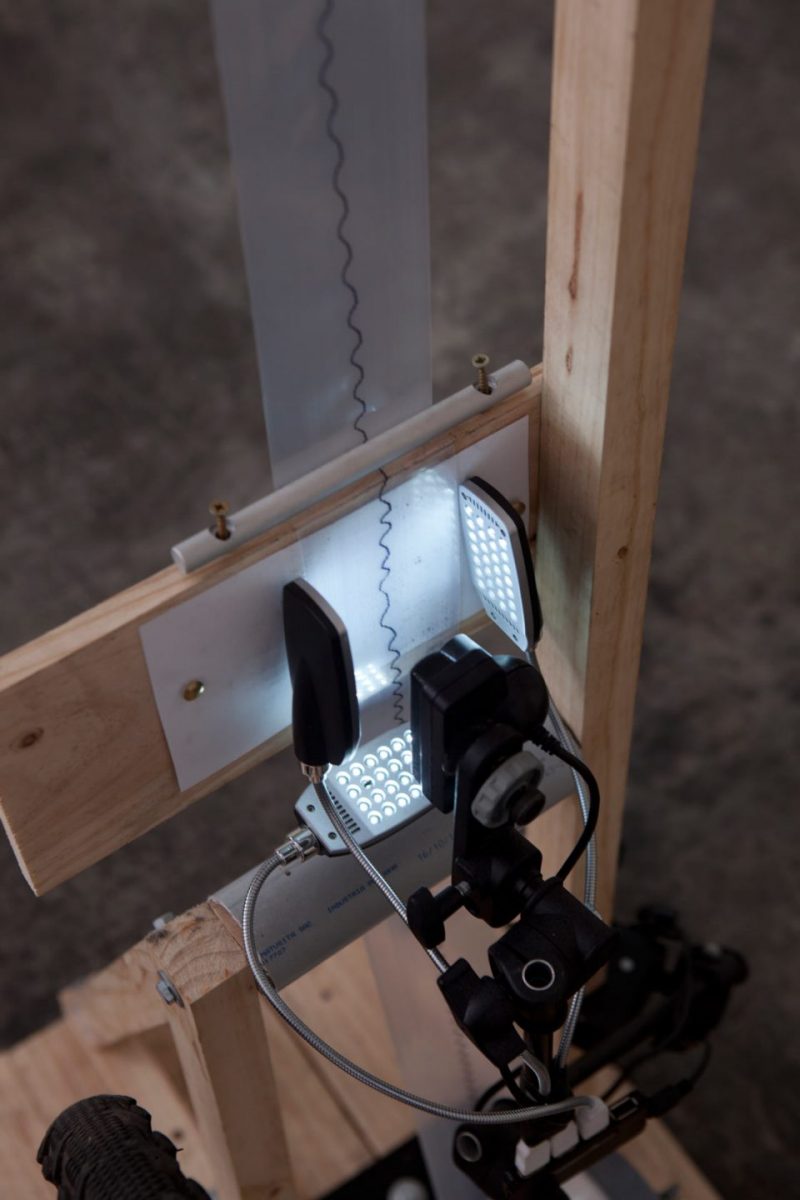 La muestra está conformada por dos dispositivos que a través de mecanismos sonoros y motrices crean determinados productos visuales, bajo el estímulo y participación directa de los espectadores y el espacio que los rodea. El proceso y los materiales utilizados son también protagonistas al evidenciar una práctica pocas veces abordada en el panorama del arte peruano contemporáneo: la inclusión de formatos tales como el sonido, los mecanismos análogos y el funcionamiento del organismo humano como fuente de observación más allá del mero estudio representacional.
