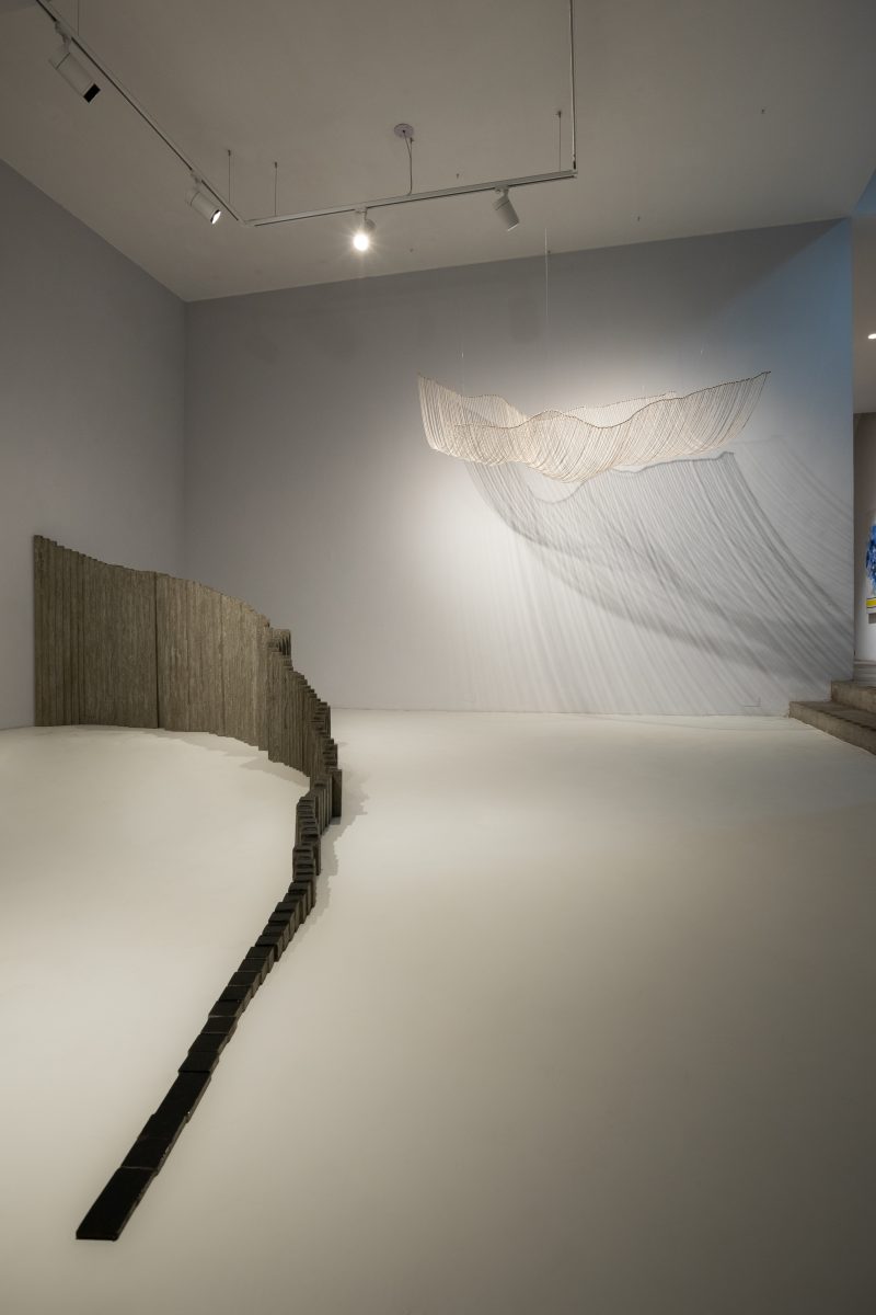 Esta muestra reúne dos obras inéditas que establecen un diálogo espacial en torno al Río Rímac y se encuentran estructuradas a partir de su propio trazado, generando tensiones y correspondencias sobre las posibles naturalezas que constituyen al río.